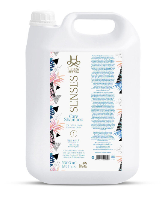 Hydra Pet Spa Senses Care Shampoo is formulated for professional use on cats & dogs, utilizing an infusion of cotton extract to enhance moisturization and emollience. Coats of all breeds and types experience an intense increase of softness and shine. The lipoprotein complex promotes deep hydration and help revitalize the coat to recover from sun damage and styling damage.